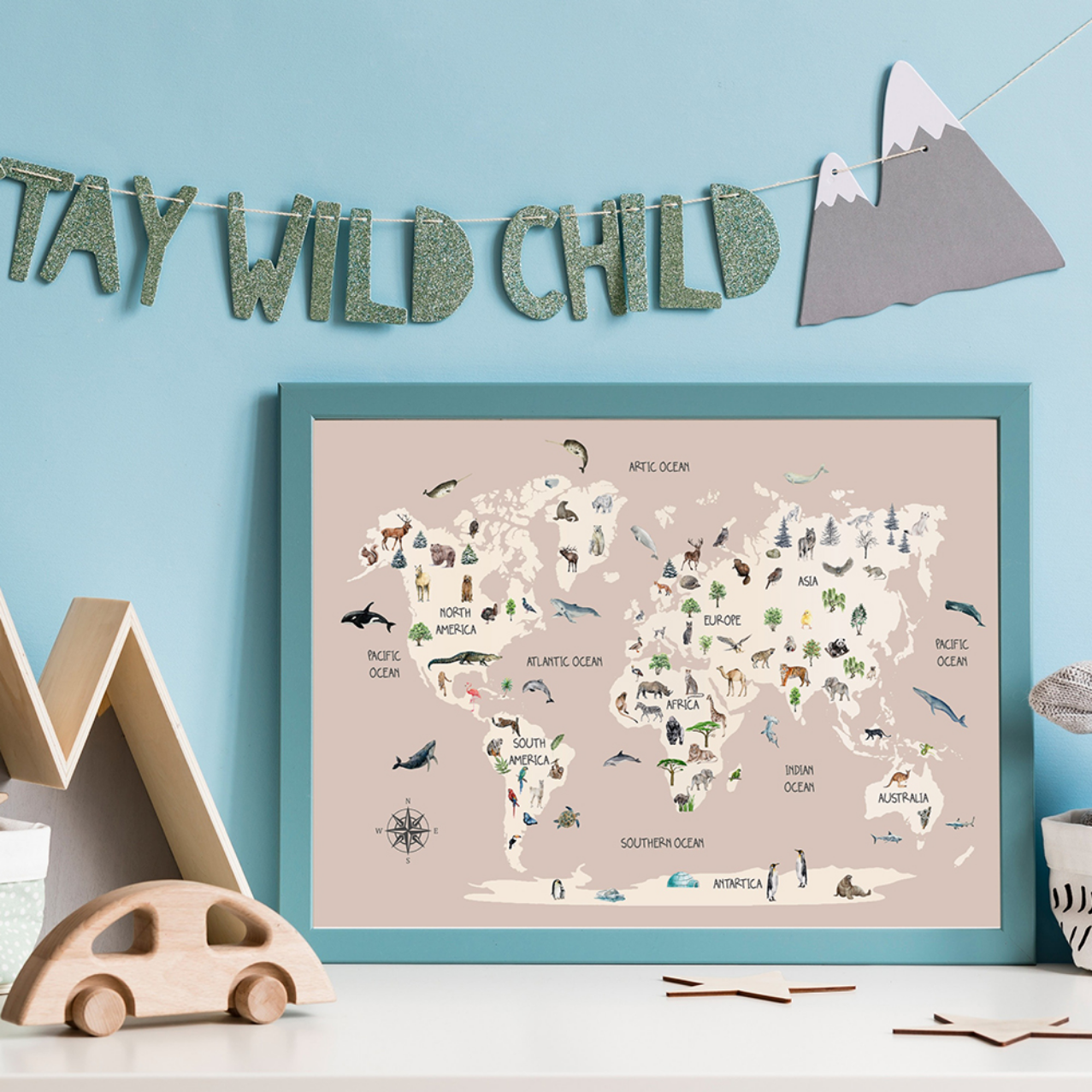 Childrens Animal World Map - Scandinavian Style